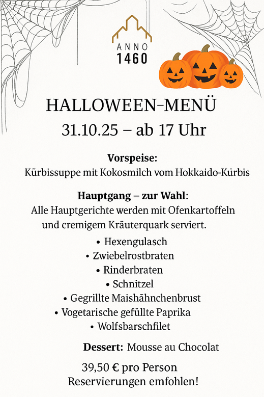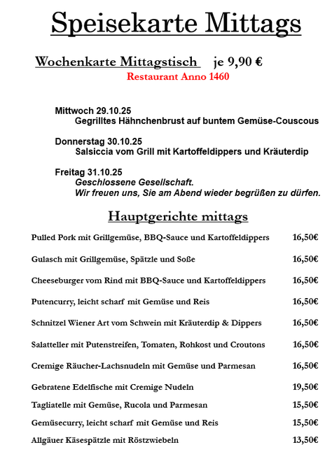 Wir hoffen, dass Sie sich hier im ANNO 1460 wohl fühlen und wünschen Ihnen schöne Stunden und einen guten Appetit!